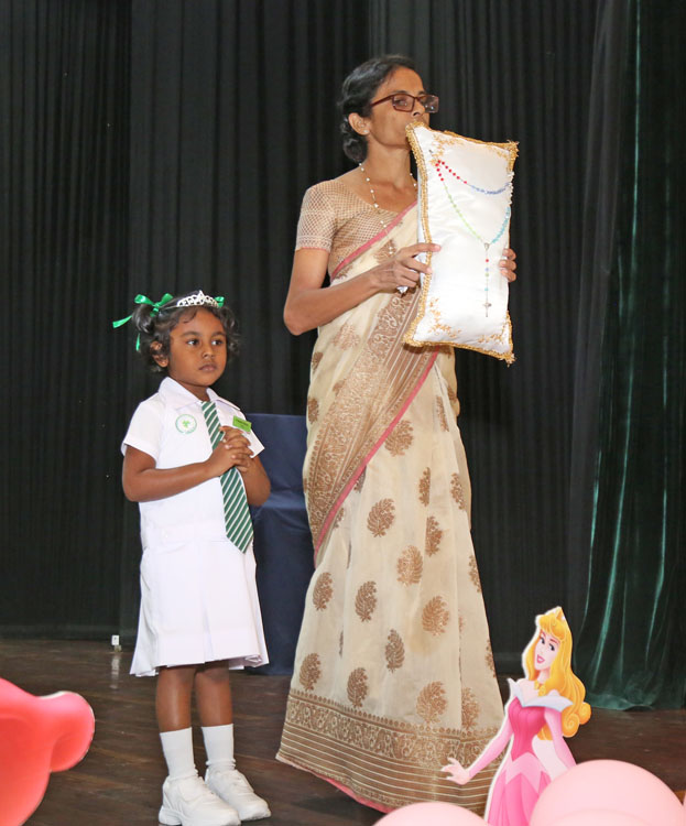 A series of delightful entertainment items followed, leaving our little princesses wide-eyed with wonder. Two confident Grade 2 students then took the stage to recount a few fond experiences of school, from the excitement of their initial interviews to the joy of daily school life.